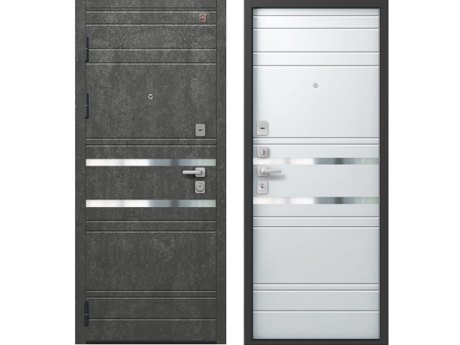 Входная дверь Центурион С-109 Серый муар+серый камень-Софт белый 2023/2024