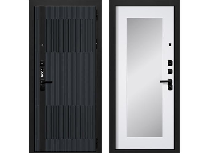 Входные двери Гуд 2 Черный муар, Графит шагрень - Веллуто Бьянко